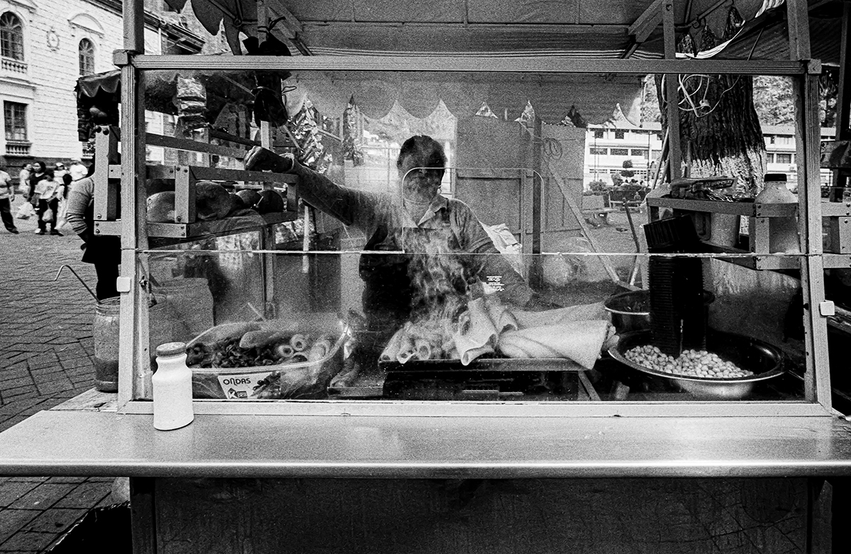 Se combinó formato medio en 6×4.5 con una Pentax 645n con un 75mm para el color, así como una Leica M3 con un super angulón para el blanco y negro